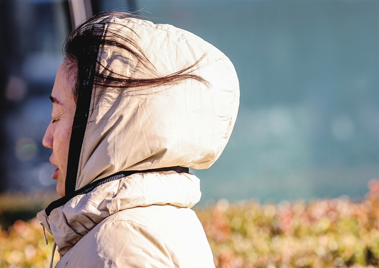 十二月二日,在北京市西城区,一名路人被风吹得闭上了眼睛。北京近日在冷空气的影响下开启“冷冻模式”,伴随强劲北风,风寒效应明显。新华社记者 殷 刚 摄