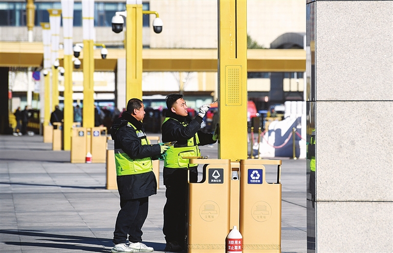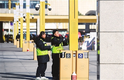 12月4日,市政建管中心广场管理所的工作人员对太原火车站站前广场的设施进行维护和升级,以保障旅客冬季出行的安全与便利。牛利敏 摄