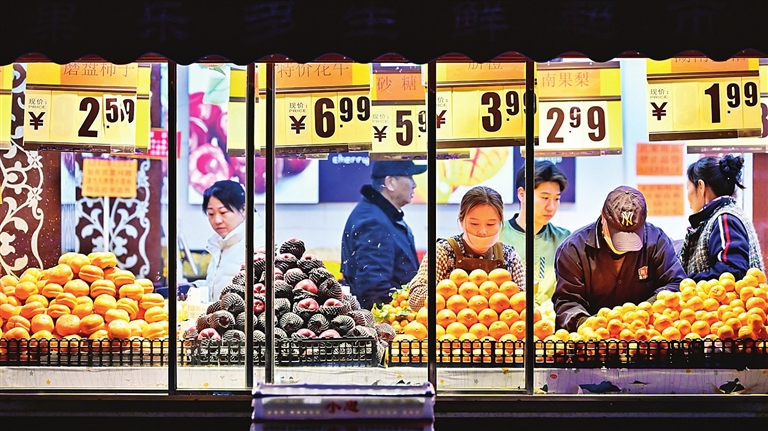 12月10日,消费者在天津市滨海新区的一家超市选购商品。国家统计局12月10日发布数据显示,11月份,居民消费持续恢复,全国居民消费价格指数(CPI)环比略降0.1%,同比上涨0.7%,涨幅比上月扩大0.5个百分点,为2024年3月份以来最高。扣除食品和能源价格的核心CPI同比上涨1.2%,涨幅连续3个月保持在1%以上。