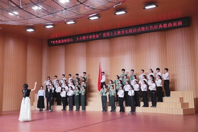 12月11日,小店区北格镇三贤小学、同过小学、山西工商学院三牛学院联合开展“红色歌曲映初心、大小携手承使命”爱国主义教育实践活动,通过大合唱、诗歌朗诵等形式,推动红色文化教育从课堂走向舞台。王韵菲 郭苑甫 摄影报道