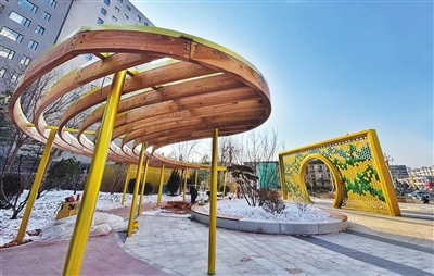 12月17日,新建路府西街口东南角小游园内,工人在搭建弧形结构的廊架。该游园采用新中式设计,兼具中式园林的借景巧思与现代艺术的几何美感,完工后将为市民增添一处休憩赏景的新去处。邓寅明 摄