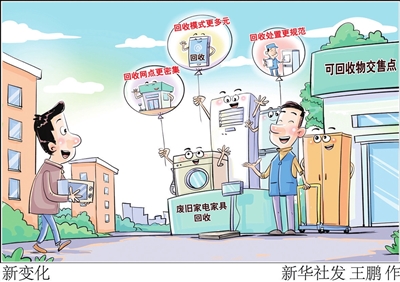 记者走访发现,除了“互联网+”回收平台,近年来,生产企业、流通销售平台构建的“逆向回收”模式也日渐兴起,为居民以旧换新提供了便利选择。