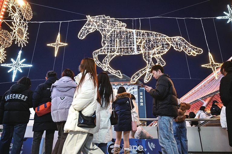 随着农历马年的脚步渐近,北京街头巷尾的节日氛围逐渐升温,吸引众多游客游玩观赏。新华社记者 陈晔华 摄