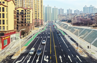 12月22日,车辆行驶在天成路上。该条道路的开通有效缓解了东山区域交通压力,改善约2万名居民的出行条件。牛利敏 摄
