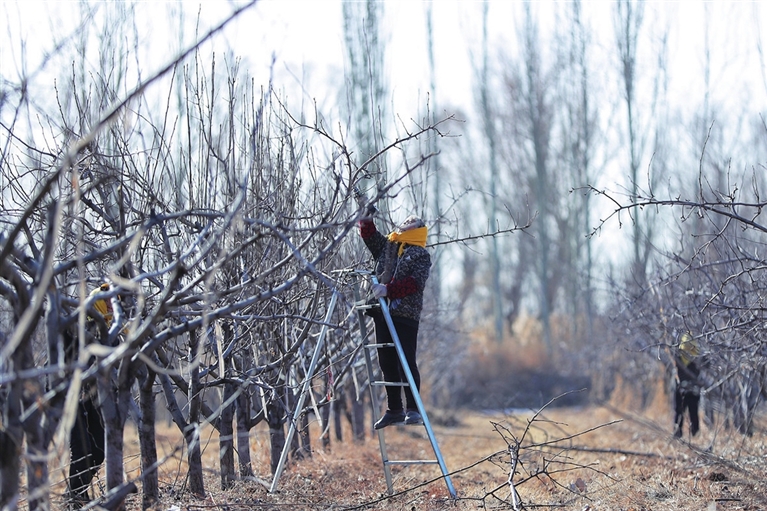 12月23日,小店区王吴村梨园内,村民们正抢抓冬季农时,对2000余亩梨树开展疏枝、整形、去病枝等作业,为来年丰产奠定基础。王韵菲 摄