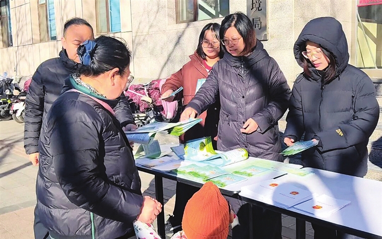 第八个“宪法宣传周”期间,市生态环境系统普法志愿者通过科普讲解、宣传物料发放、悬挂活动条幅等方式,向广大市民介绍生态环境保护法律,宣讲如何在日常践行绿色低碳生活理念,以及破坏环境后面临的法律处罚,并对市民提出的环保权益维权、投诉举报环境污染行为等问题,进行了详细解答。