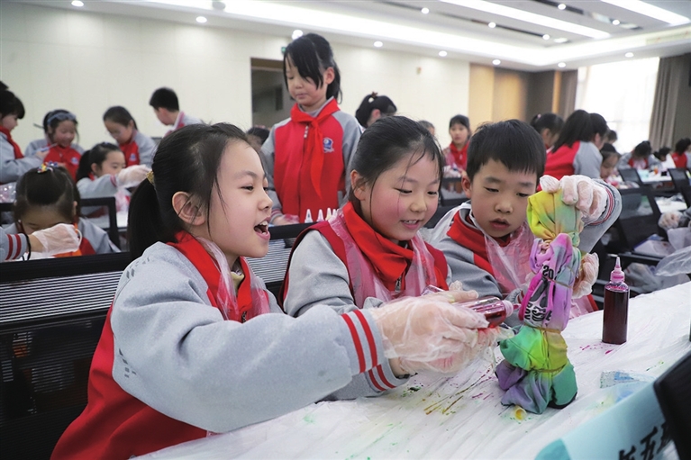 12月23日,后小河小学举行“非遗传承家”主题比赛。现场,孩子们协作完成漆扇、扎染、花馍、面塑等非遗项目,进一步感受非遗魅力。张昊宇 梁 凤 摄影报道