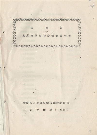 主讲人:答案就在我手中的这份档案里。这是新中国成立后太原市第一个城市发展总体规划——1954年《山西省太原市城市初步规划说明书》,从其中的《太原市1954年规划图》中我们可以看出,这次规划首先就是吸纳了梁思成先生“汾河两岸自成绿带”的意见,规划了以汾河带状公园作为城市的南北轴线,并设计汾河河床水面宽200米,连同两岸绿化和滨河路总宽为800米,给治理和美化汾河预留了建设空间。