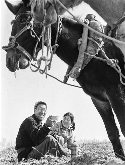 和全国其他城市一样,太原市改革首先在农村取得突破性进展。1979年,阳曲县泥屯公社上后背村率先实行了大包干,首开太原市“联产承包责任制”的先河。我们现在看到的这张照片(图一),拍摄的正是1980年阳曲县泥屯公社上后背村的村民在自己承包的土地上劳作间隙休息的场景。这一年,以包产到户、包干到户为主要形式的家庭联产承包责任制开始在全市推广。到1983年底,全市99.6%的村实行了家庭联产承包责任制,极大地调动了农民的生产积极性。