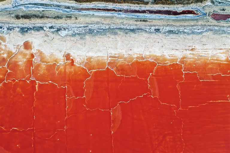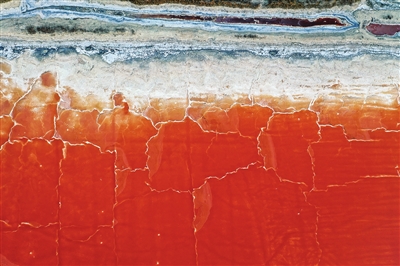 这是2025年5月20日拍摄的山西运城盐湖景色(无人机照片)。