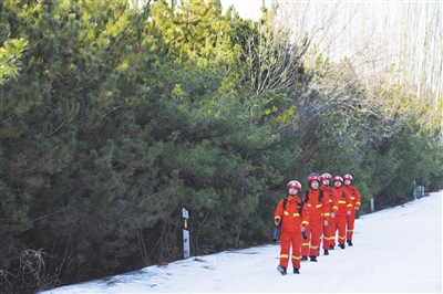 12月28日,杏花岭区杨家峪综合应急中队的工作人员在辖区山林间巡查,紧盯重点区域,筑牢冬季安全“防火墙”。牛利敏 摄