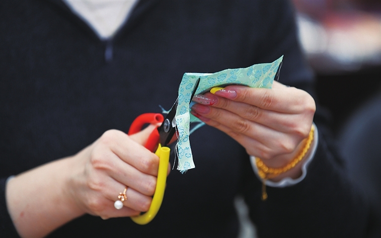 “我想选这块带云纹的面料,给女儿做个发夹,希望她新的一年吉祥如意、快乐成长。”报社职工张悦在材料堆中仔细挑选,眼中满是温柔。她告诉记者,亲手制作比购买成品更有意义,“这份新年礼物独一无二。孩子戴上它,肯定能感受到我的心意和传统手工艺品的精美。”像张悦一样,许多职工都将真挚的情感与美好的祝福融入了作品之中。记者李慧君手持刚完成的车挂件,脸上洋溢着满足的笑容:“这个小挂件准备送给父亲,希望他新的一年出入平安。”年轻职工小郑则精心制作了一枚胸针:“准备别在新年穿的新衣上,既喜庆又有文化韵味,也是给自己的一份特别纪念。”小小的手作,成了承载职工情感与新年期许的特殊载体。