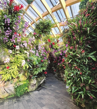 第三天,我们一大家子去游览植物园。刚走进温室,一股热浪扑面而来。高大的树冠几乎触到穹顶,王莲的叶子大得像一张圆桌,各色奇花争奇斗艳,香蕉沉甸甸地挂满枝头。