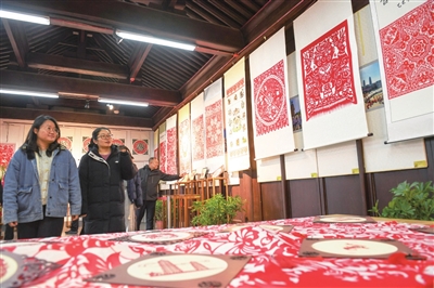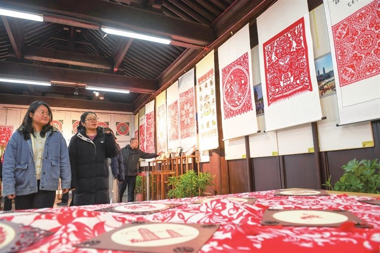 2025年12月31日,双塔公园举办“匠心独韵 精彩传承”——2026年迎新民间剪纸艺术展。本次展览汇聚了16位民间剪纸艺人的33件作品,让观众领略剪纸艺术的独特魅力。牛利敏 摄