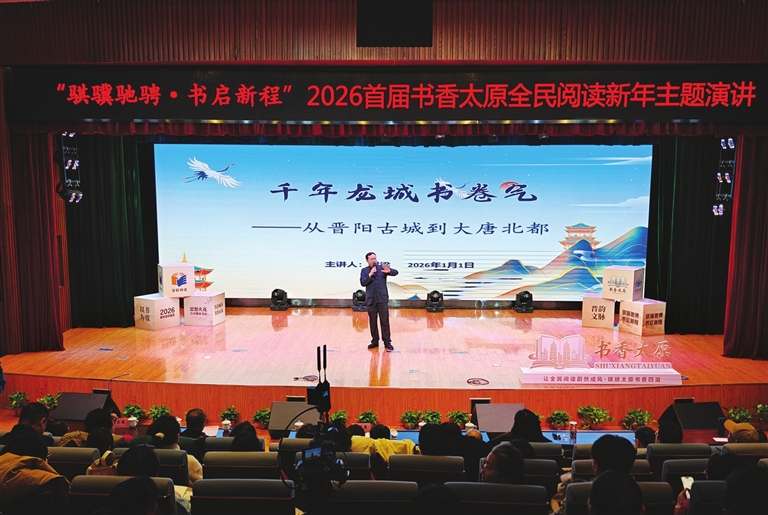 本次活动由中共太原市委宣传部(太原市新闻出版局)指导,太原广播电视台、太原市图书馆、太原市读书协会主办。主题演讲环节,3位嘉宾分别分享了各自的阅读故事与深度思考。山西省作家、历史学者和民族史专家树梁,以“千年龙城书卷气——从晋阳古城到大唐北都”为主题,品读太原的文化基因,串联起太原在历史上的重要地位,剖析晋阳文化基因对当代阅读的启示。中国红楼梦学会会员、山西财经大学教师侯莉,聚焦当下阅读的“变与不变”,解答如何在信息洪流中守护文化基因,为未来创新提供土壤。山西敲门砖数字文化创意股份有限公司董事长、品牌营销专家乔宇,解读山西文旅创新、晋商精神等实践案例。