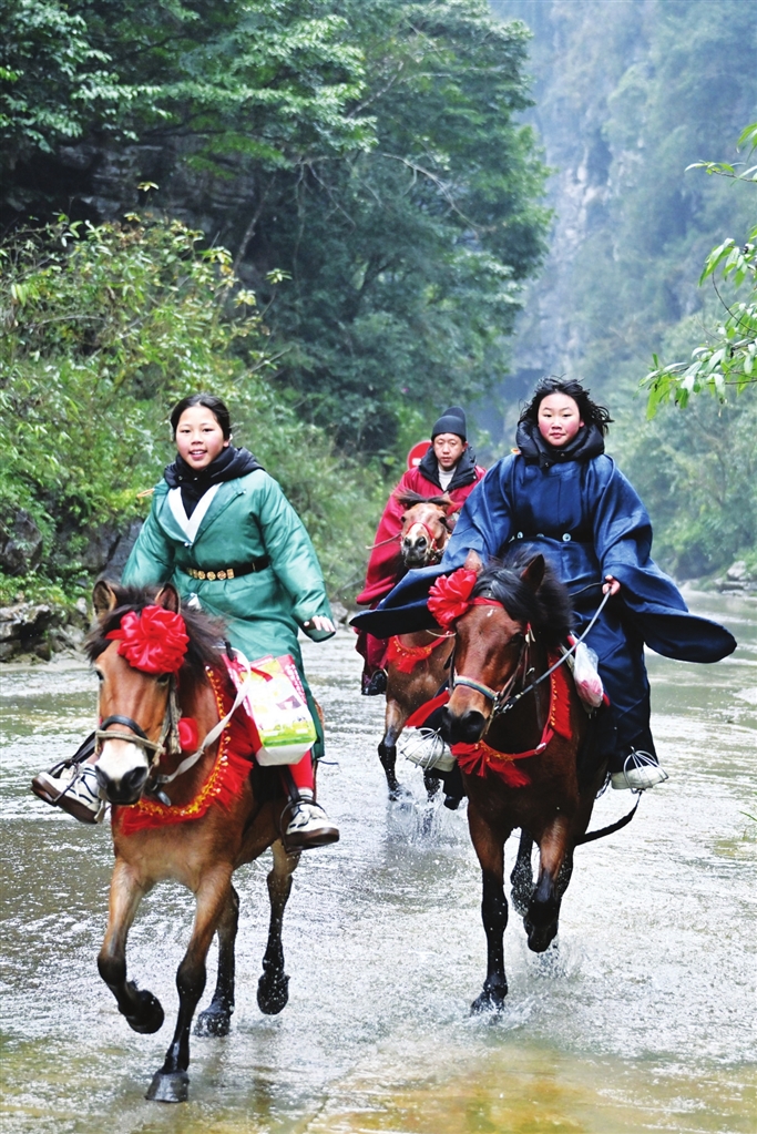 1月3日,游客在湖北省恩施土家族苗族自治州宣恩县狮子关风景区骑马游玩。新华社发 (宋 文 摄)