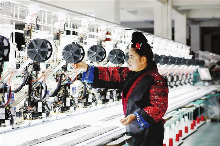 ❶1月4日,绣娘在贵州省黔东南苗族侗族自治州施秉县一家数字化苗绣企业生产车间作业。