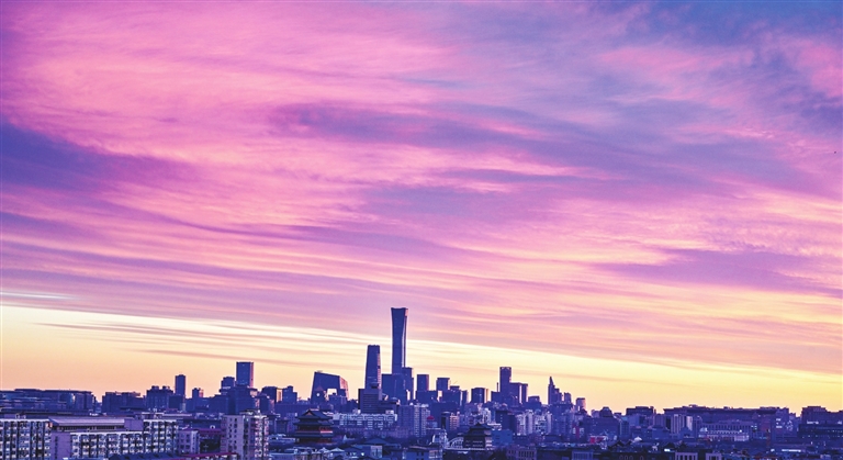 这是1月7日清晨在北京拍摄的朝霞。新华社记者 陈晔华 摄