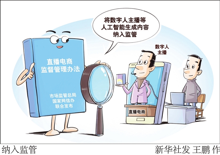 市场监管总局网监司司长朱剑桥介绍,《直播电商监督管理办法》针对直播电商行业特点,强化监管手段,将流量管控纳入监管工具箱;将数字人主播等人工智能生成内容纳入监管,避免新技术成为生成或传播虚假信息的“挡箭牌”,促进人工智能技术在直播电商领域的规范应用。