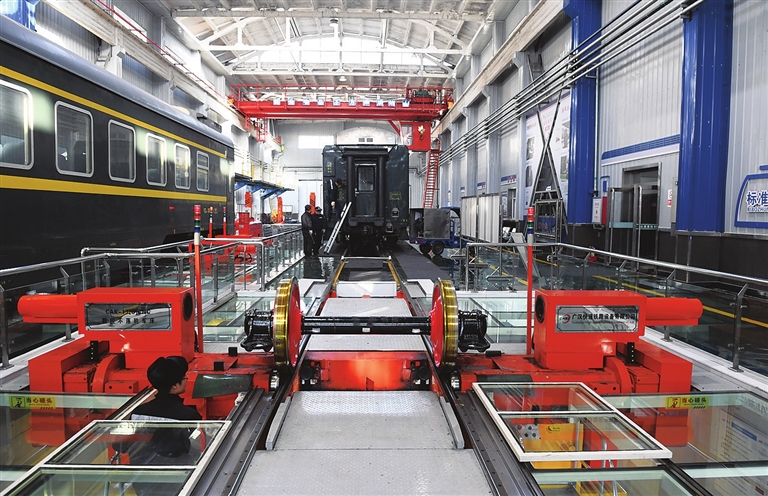 一月八日,中国铁路太原局集团有限公司太原车辆段内,工作人员在检修客运车辆。为了迎接春运,该车辆段积极做好旅客列车出库设备设施检查、途中车厢巡视、大站作业联控等工作,不断提高客车车体质量,确保旅客平安出行。