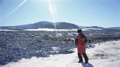 南极秦岭站附近,几只黑白分明、步履蹒跚的阿德利企鹅歪着头,打量着不远处向他们热情招手的中国考察队员。