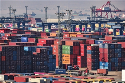 1月14日拍摄的江苏省港口集团南京港龙潭港区生产场景。海关总署1月14日发布数据显示,2025年,我国货物贸易进出口总值45.47万亿元,同比增长3.8%,自2017年起连续9年保持增长。新华社发 (辛 一 摄)