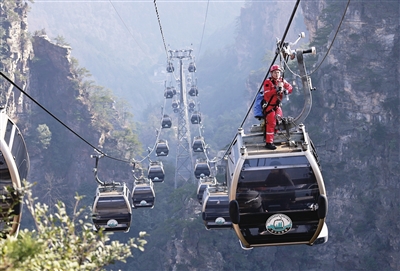 1月15日,湖南省张家界国家森林公园在天子山索道开展冬季高空救援模拟演练,检验索道安全性能及景区各部门快速应变处置能力,保障旅游安全。