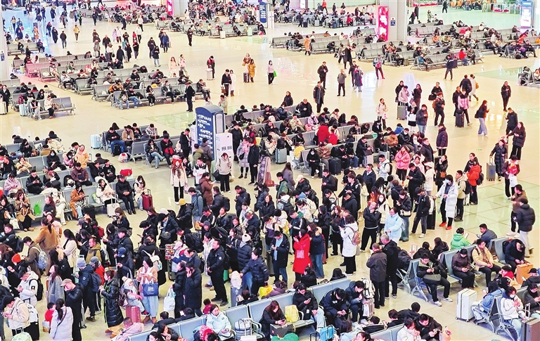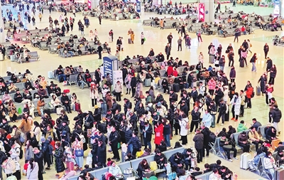 随着我省各高校陆续放假,1月16日,太原南站迎来了学生客流高峰。该站畅通服务通道,定制服务项目,细化服务措施,全力保障旅客平安出行。牛利敏 摄