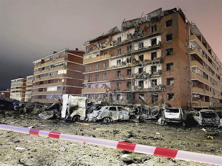 俄罗斯西南部阿迪格共和国1月20日晚至21日凌晨遭遇无人机袭击,造成至少11人受伤。新华社发