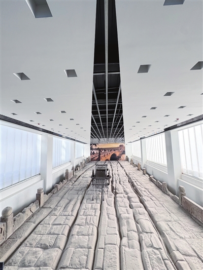 站在遗址馆内的桥边俯视,几道车辙如时间的沟壑,深嵌于石面,这正是数百年前真实的交通流量记录。