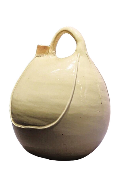 转过一隅,一件辽代白瓷皮囊壶稳稳立于展柜中央。壶身圆鼓,一侧有仿皮革缝合的凸棱,提梁处还做出穿绳的孔眼。这分明是草原民族随身携带的皮水囊,却被定窑匠人用瓷土复刻得惟妙惟肖。这件文物名为白釉皮囊壶,年代为辽代,出土于内蒙古自治区赤峰市敖汉旗贝子府镇一带的辽墓,现藏于内蒙古博物院。游牧民族逐水草而居,习惯用皮囊盛酒装水;而汉族窑工加以借鉴,将异族生活器物转化为典雅陈设。