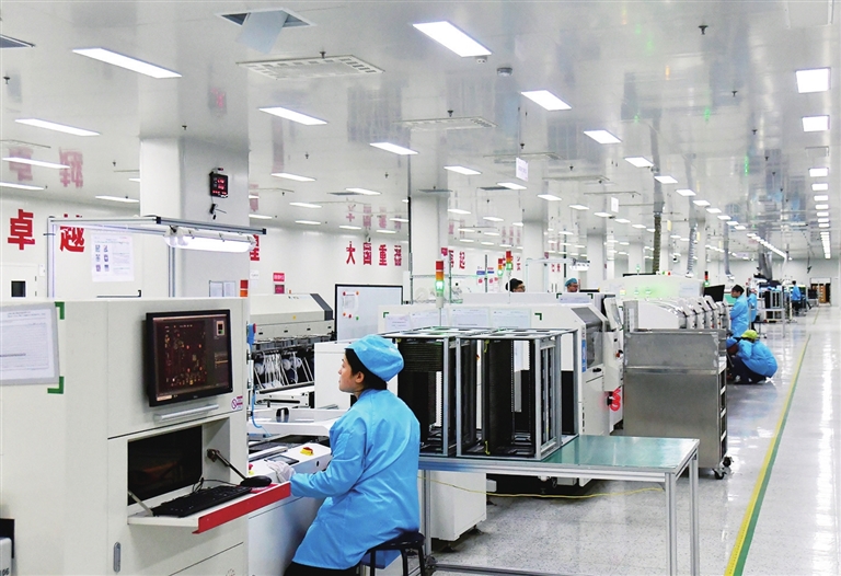 1月24日,长城高端电源研发制造产业基地内,工作人员正在流水线上忙碌。该基地位于中北高新区,计划建设4条生产线。目前,已完成2条生产线的建设和投产,其余工作加紧推进。赵世凯 摄