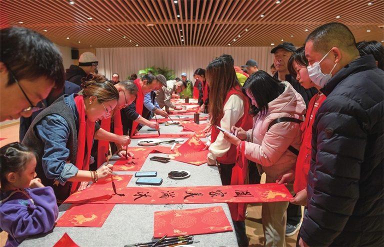 1月27日,山西省图书馆联合山西省硬笔书法协会举行“迎新春送春联”文化惠民公益活动,以笔墨为媒,为读者朋友们送上马年祝福。牛利敏 摄