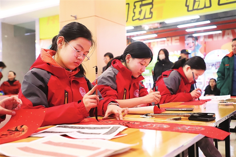 1月28日下午,迎泽区双东小学联合桥东街道并州东街三社区举行“迎新春·送祝福”公益写春联活动。活动现场,学生们认真书写,为大家送上新春祝福。