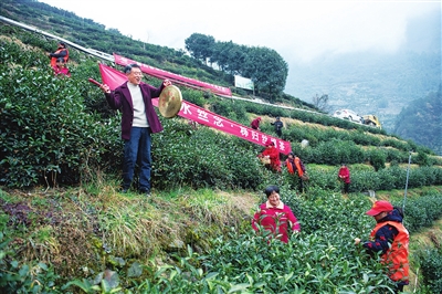 1月29日,三峡库区湖北省宜昌市秭归县“丝绵茶1号”早茶基地开园,当地茶农抢采茶叶嫩芽,供应春节市场。湖北秭归是“中国丝绵茶之乡”,近年来,当地茶农和华农大科研人员立足本地优势茶树品种,选育并推广“丝绵茶1号”特早生茶树新品种,助力乡村产业振兴。新华社发