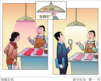 市场监管部门工作人员提醒,消费者在购买生鲜食品时,可在自然光线下对照比较,避免上当受骗的同时,也起到“良币驱逐劣币”作用,让“生鲜灯”失去发挥作用的土壤。