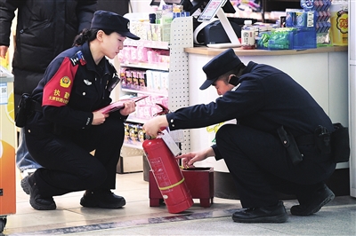 2月1日,太原站派出所民警对车站内的消防设施、疏散通道进行了全面检查,确保广大旅客的出行安全。邓寅明 戴 娣 摄影报道