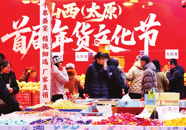 1月30日,2026山西(太原)首届年货文化节在晋阳湖国际会展中心开幕,六大展区集中了特色粮油、乳制品、干果炒货、茶叶、水产品、传统熟食、生鲜肉等产品,吸引了众多市民前来购置年货。张昊宇 摄