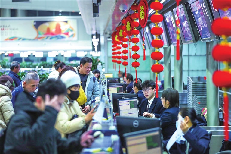 “最害怕的就是出错。”他坦言。值机工作看似重复,却关系着旅客能否顺利启程。作为新人,面对激增的客流量,他感到压力不小。他的工作包括为旅客换取登机牌、托运行李,还要为需要特殊服务的旅客——比如使用轮椅的老人、无人陪伴的少年——提供直至登机口的全程引导。“一定要确保每一步都准确。”对郑嘉译而言,这份工作意味着从校园到社会的身份转变,意味着独自承担责任。民航业以安全为底线,规章制度的严谨远超他大学时的想象。8小时的工作,上一天休一天,节奏紧张,却让他迅速成长。“保障好春运,大家才能过好年。”他眼神坚定,这份沉甸甸的责任,正是他奋斗的起点。