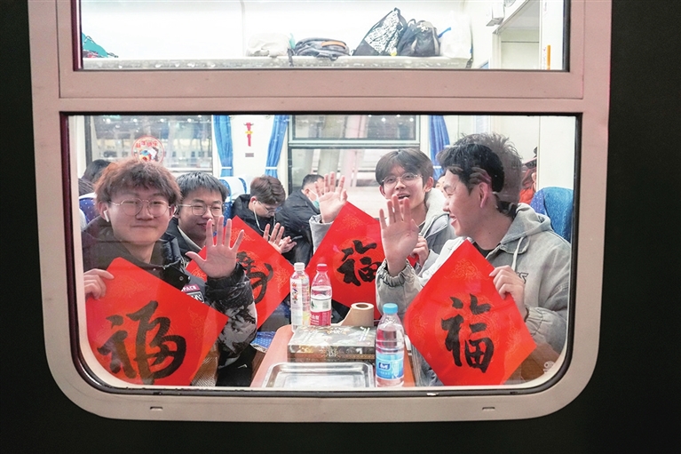 “没想到在车站还能领到手写的春联,比印刷的更有温度、更有意义,已经感受到浓浓的年味了。”领到春联的旅客游女士满脸笑意。