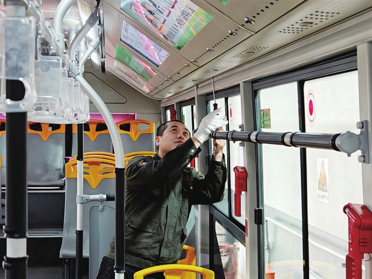 2月5日,太原公交第四汽车分公司五车队全面开展春节前安全大检查工作,筑牢公交运营安全防线。郭苑甫 摄