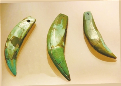 在四川广汉三星堆出土的众多珍宝中,有三颗小巧的物件十分特殊。它们整体呈碧绿色,带有自然的渐变,根部都有一个规整的圆形穿孔,乍看之下,竟与北方腊八节腌制的腊八蒜有几分神似。然而,它们的材质并非青铜或绿松石,而是真正的虎牙。古蜀人将其钻孔,作为装饰品系挂穿戴。