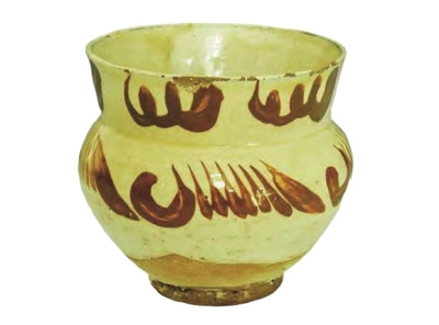 装饰纹样多以抽象的花卉线条为主,笔法简练,流畅自然。色彩对比鲜明,褐彩在白地的衬托下格外醒目。