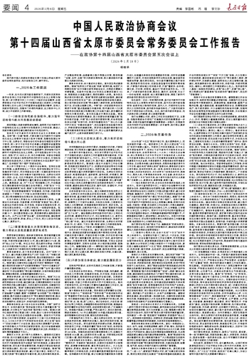 中国人民政治协商会议第十四届山西省太原市委员会常务委员会工作报告