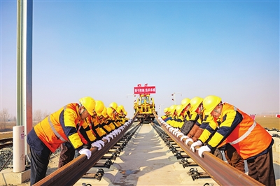 图为雄忻高铁铺轨现场。(图片由中铁三局提供)