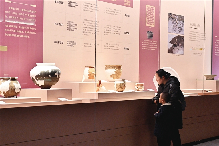 “夏时期的中国”特展,依托夏文化研究最新成果,融合考古发现、古代文献与历史传说,以文物遗存为基,以历史发展为序,带领观众穿越数千年时光,拨开夏代文明的神秘面纱。展览以“文明化成”“王朝崛起”“华夏共生”三个单元层层递进,开篇聚焦陶寺与石峁两大史前巨型都邑,通过城垣遗迹、最早的天文观象台、象征王权的礼器等实物,揭示早在夏王朝之前,国家形态与文明社会已在黄河流域孕育出坚实根基。