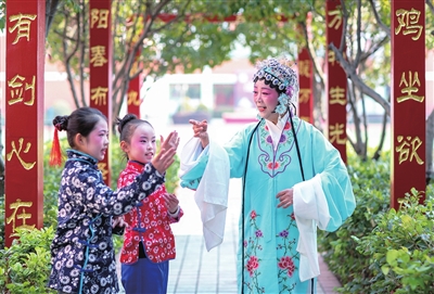 2月8日,在江苏省泰州市姜堰区城西学校教育集团城西小学校区公益寒托班上,戏曲老师指导学生练习戏曲基本动作。新华社发 (周社根 摄)