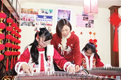 2月8日,孩子们在浙江省湖州市德清县乾元镇一家琴行练习弹古筝。新华社发 (倪立芳 摄)