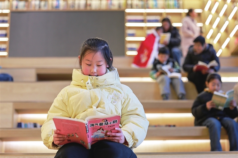 2月8日,江苏省泰兴市新时代文明实践中心羽惠书房内,小朋友在看书。新华社发 (顾继红 摄)