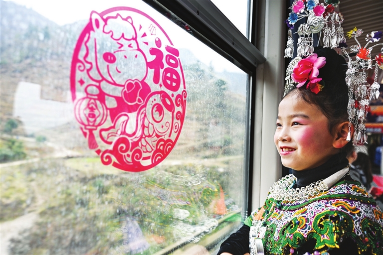 新春将至,贵州贵阳开往玉屏的5640次“慢火车”装饰一新,喜庆的车厢、新鲜的农产品、特色民族歌舞、精美非遗展示等让这趟穿行于苗乡侗寨的山区“慢火车”载满浓浓的新春年味。新华社记者 杨文斌 摄